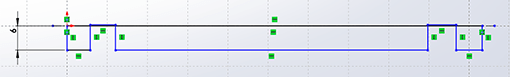 f) Beim Zeichnen der Skizze [2D-5R] haben wir keine Rücksicht auf die Bemaßung genommen. Das holen wir jetzt nach: Jede einzelne Linie anklicken und im Feld Linieneigenschaften unter Parameter [19R] das richtige Maß eintippen. So wird z. B. die linke Linie mit ihrer Länge von 39,5 mm überschrieben mit 6 mm, denn die fertige Achse hat einen ø von 12 mm. Dabei wird die erste Zeichnung zur schmalen Skizze [2D-6R] zusammengequetscht. Alle Längen und die Einstichdurchmesser sind dabei unmaßstäblich geblieben.