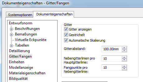 Unter Systemoptionen genannte Begriffe gelten für alle Dokumente, Dokumenteigenschaften dagegen nur für das jeweilige Dokument.