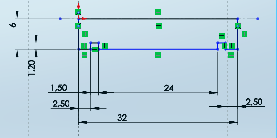 Vor dem Eintippen der Maße aktivieren wir in der Skizzenebene Intelligente Bemaßung [3]. Dann wird jedesmal die Maßlinie mit dem Maß gesetzt [2D_7R]. Die Maßlinie lässt sich beliebig verschieben.