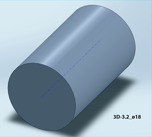 Die dazugehörigen Längen: 30, 10 und 15 mm; Gesamtlänge 55 mm. Die vordere Kante des kleinen Durchmessers 18 ist mit 2 mm abgerundet.