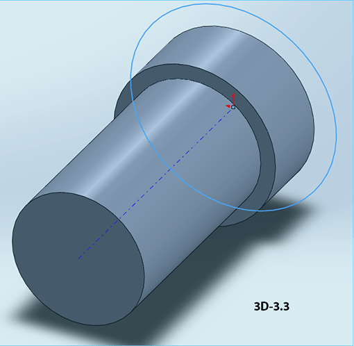 Mit den gleichen Schritten wie bei der Hülse modellieren wir den Durchmesser 18, 30 mm lang (Bild [3D-3.2]). Danach schließen wir nach hinten die beiden Durchmesser 22 und 28 an. Wir können genau so gut mit dem Durchmesser ø28 beginnen.
