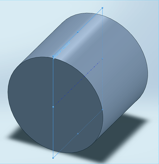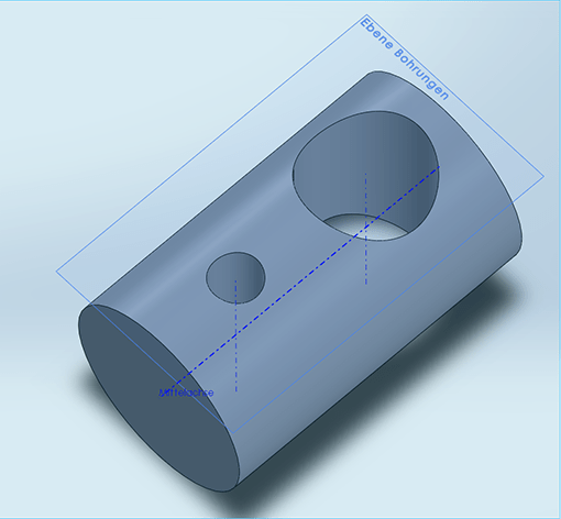 Möchte man in einen Zylinder quer zur Mittelachse ein Loch bohren, eine Schlüsselfläche fräsen, eine Nute einfräsen usw., dann lässt sich das beim Modellieren nicht unmittelbar auf dem gekrümmten Zylindermantel bewerkstelligen. Wir müssen dafür Referenzebenen zu Hilfe nehmen, die tangential auf den Zylinderumfang aufgesetzt werden. Die sich daraus ergebende Berührungslinie ist der geometrische Ort für das Bohren, Fräsen usw.