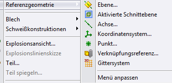 - Im Menü unter Einfügen Referenzgeometrie anklicken und Achse [2E] wählen.
