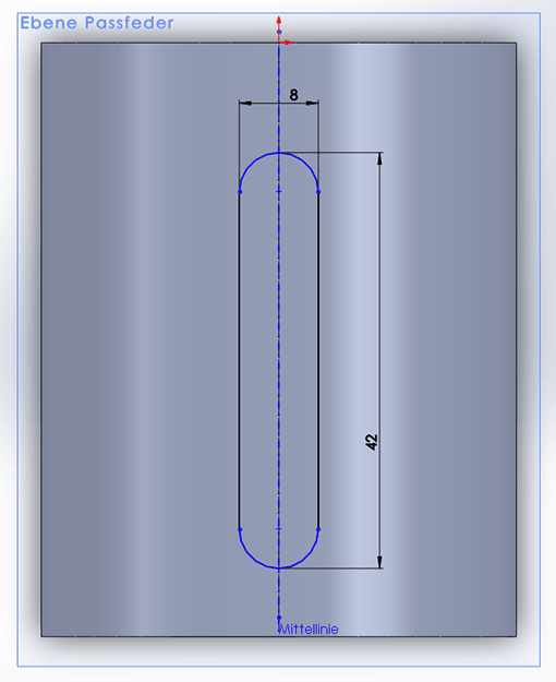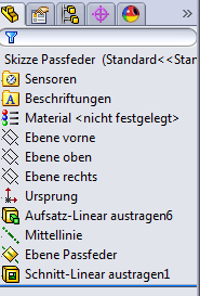 - Bestätigen; der Ebene im FeatureManager den Namen Ebene Passfeder geben. Der Name erscheint in der Ebene.
