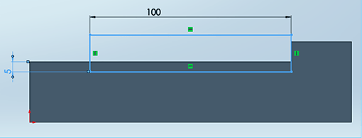 – Gerades Langloch aus der Skizzierfunktion wählen und aufziehen. Intelligent bemaßen, so dass das Langloch an seinen exakten Platz rückt.