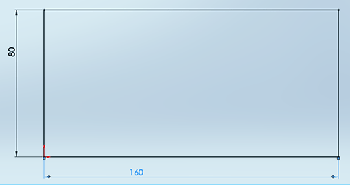 Wir beginnen auf Ebene oben mit der Skizze: Ecken-Rechteck 160 x 80, das wir auf 40 mm Höhe extrudieren. OK.