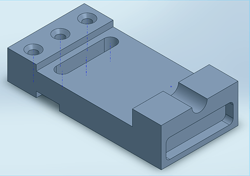 Eine schrittweise durchgeführte Übung, mit der wir weitere Möglichkeiten und Funktionen in SolidWorks kennenlernen. Das Teil enthält verschiedene Aussparungen, Bohrungen und ein Langloch.