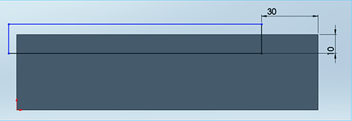 - 1. Ecken-Rechteck schneidet von oben her die Vertiefung aus, die 10 mm tief bis zur linken, 30 mm hohen Partie hinabreicht (Bild Pr 4).