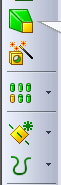 In der isometrischen Perspektive des Teils (Bild Pr 7) die linke ober Fläche anklicken, dann die Bohrung aktivieren, die Funktion Lineares Muster (Bild, 2 Symbol ) wählen und als Bohrungsabstände D1 = 28 mm und als Kopien 3 eintragen. Darüber hinaus wird im Propertymanager Richtung 1 verlangt: Dazu die links neben den Bohrungen liegende Werkstückkante anklicken; sie läuft zur Richtung der Bohrungen parallel (Bild, 3 Symbol). OK.