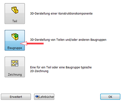 – Neues Dokument ––> Baugruppe ––> OK (Dialogfeld Bild Gr 2).