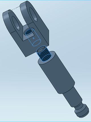 Wir fügen den Gabelkopf und den Stößel zu einer Mini-Baugruppe zusammen.