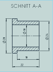 Vollschnitt: Wir haben die Lagerbuchse liegend vor uns und möchten sie im Vollschnitt darstellen.