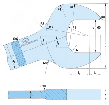Der Kopf eines Maulschlüssels ist ganz seinem Verwendungszweck angepasst. Die Backen sind dort breiter, wo beim Anziehen einer Schraube das größte Biegemoment auftritt. Durch die Verwendung von Radien wird die Kerbwirkung minimiert und die Unfallgefahr verringert.