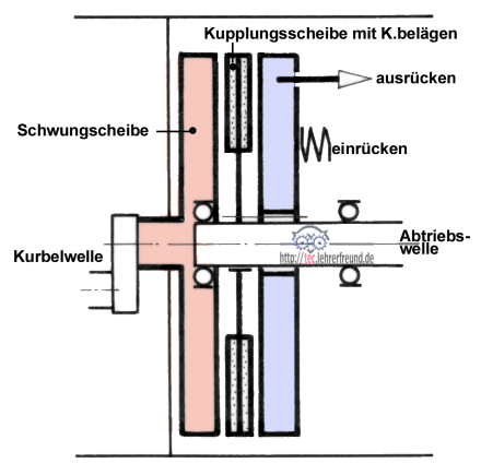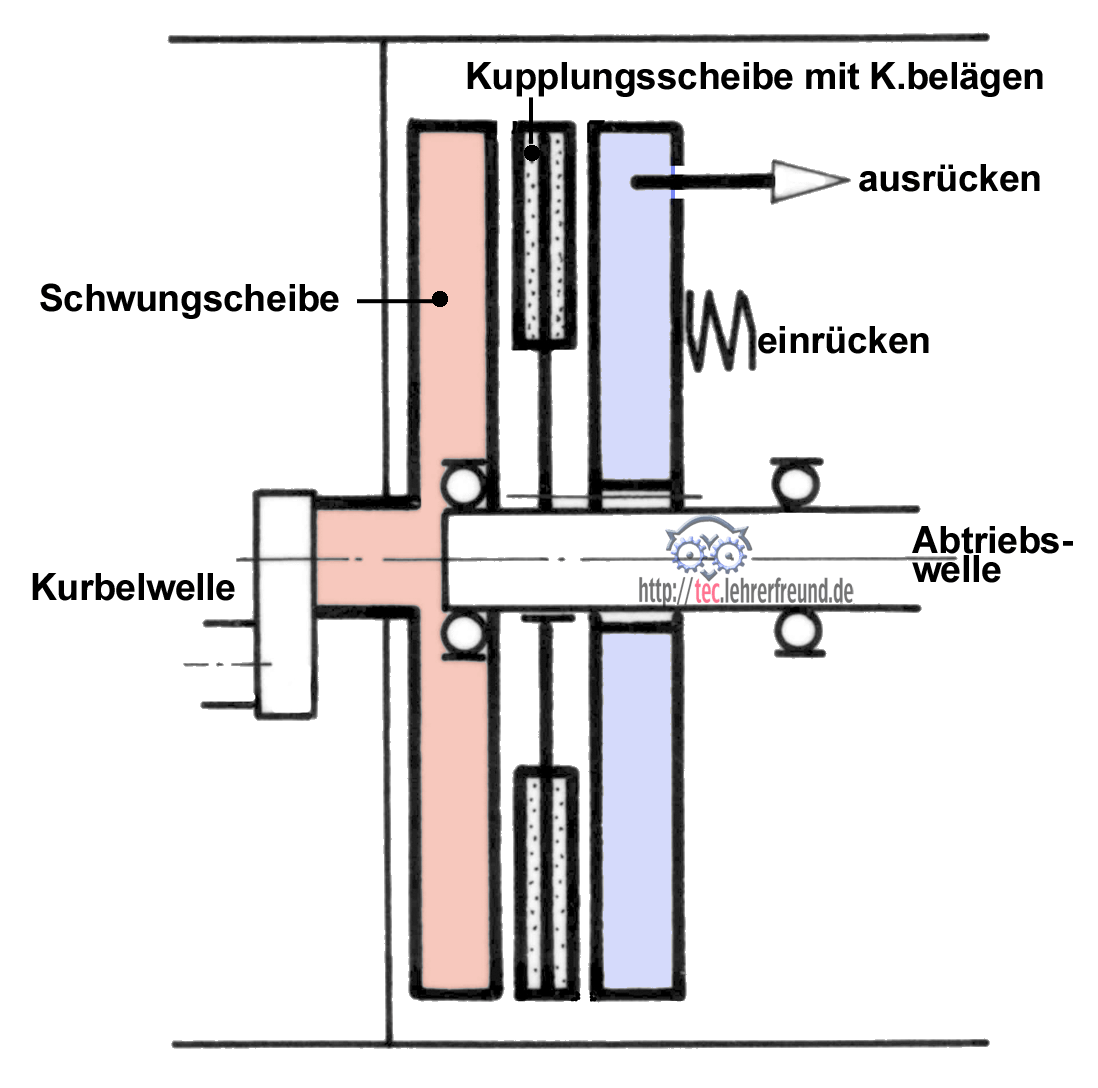 Im Bild ist eine schaltbare, kraftschlüssige Einscheiben-Trockenkupplung schematisch dargestellt. Siehe auch Kupplungen, Festigkeitsberechnungen