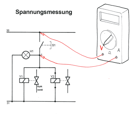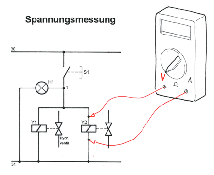 In der Praxis schließt man meist aus einer Spannungsmessung auf die Situation im Stromkreis oder einem Bauelement.