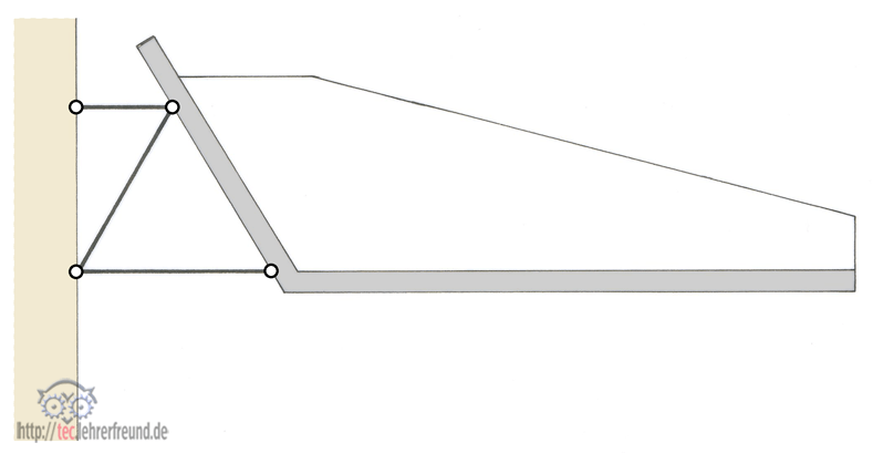 Ein Vordach muss außer seinem Eigengewicht eine Schneelast tragen. Wie stark werden dabei die Anlenkpunkte belastet? Auch hier hilft wieder die Culmannsche Gerade weiter.
