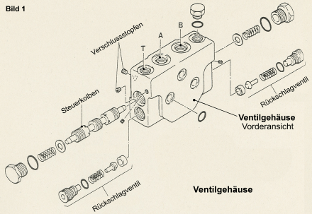 Hydraulikschaltpläne, Lehrertipps. Ein Ventil ist als Explosionszeichnung gegeben. Das Gehäuse soll in 6 Ansichten nach Norm gezeichnet werden.