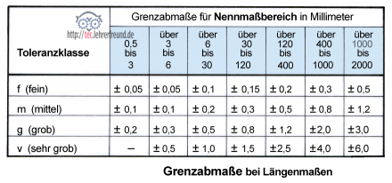 Aus Fertigungs- und Kostengründen gesteht man jeder Werkstückabmessung, also dem theoretischen Nennmaß, eine Fertigungstoleranz zu. Um diese nicht jedesmal neu beschreiben zu müssen, wurden in DIN ISO 2768-1 verbindliche Allgemeintoleranzen festgelegt.