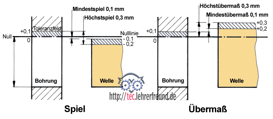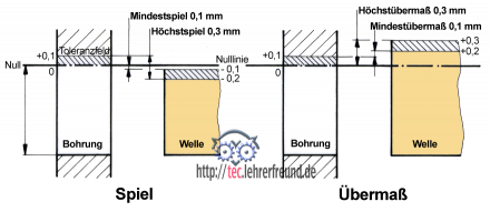 - Zwischen beiden Teilen besteht je nach Istmaß ein Spiel oder ein Übermaß ( = Übergangspassung, kein Bild).
