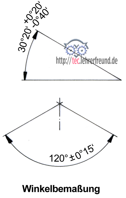 Die Maßeintragung entspricht der von Längenmaßen; siehe Bilder unten.