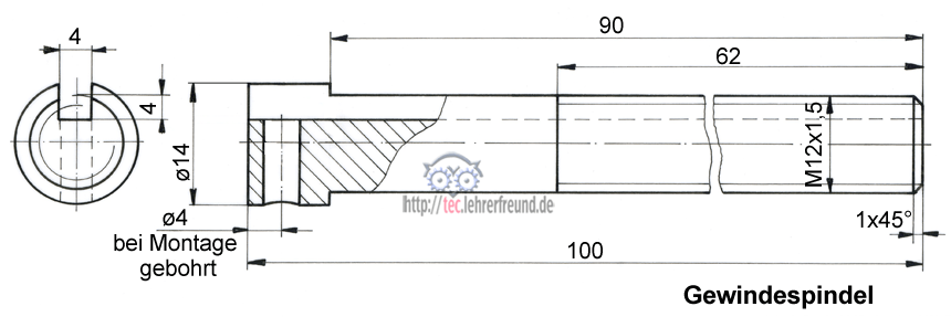 2.3 Zeichnen und bemaßen Sie die Gewindespindel Pos. 4.