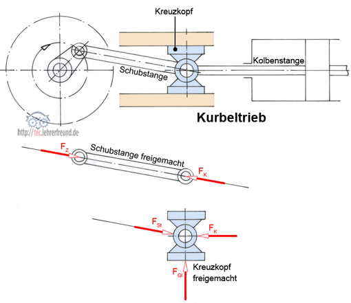 Verschiebt man die Gleitbahn senkrecht, wird der Kreuzkopf angehoben (oder abgesenkt), also ist eine Kraftwirkung vorhanden. (Lesen Sie dies im Einzelnen nach unter »Kräfte ermitteln durch Freimachen«)