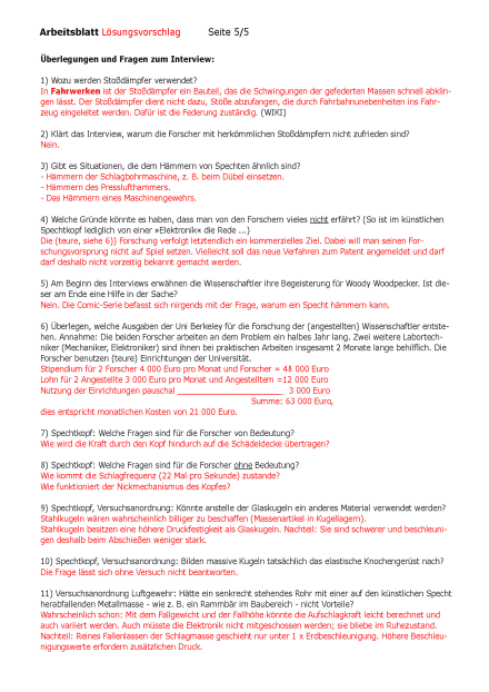 Im Beitrag »Das Geheimnis des Spechts (1)« haben wir die Frage: »Wie kommt man vom Spechthämmern zur Neuentwicklung von Stoßdämpfern« für eine Unterrichtseinheit vorbereitet.