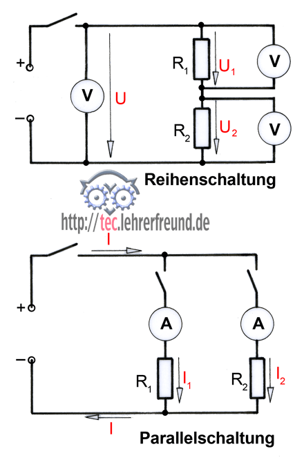 - An allen Widerständen liegt die gleiche Spannung U = U1 = U2