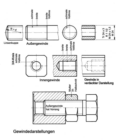 So werden Gewinde gezeichnet