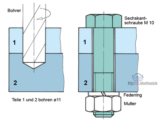 Aufgaben: Es ist die Verschraubung von Bauteilen unter verschiedenen Gesichtspunkten zu erklären.