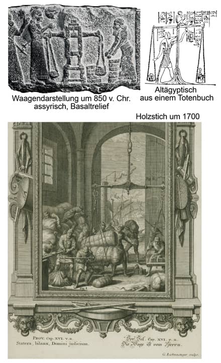 es scheint, als ob die Balkenwaage - obwohl sie für schwere Lasten unpraktisch war - sehr lange benutzt wurde. Ich habe Ihnen einige Bildbeispiele an den Beitrag »Dezimalwaage« angehängt. Der Holzstich von 1700 ist für mich ein Beweis dafür, dass sich in der technischen Fortentwicklung seit der Antike soviel wie nichts tat.
