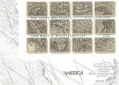Wir gehen gute 500 Jahre zurück. Damals lebte in Süddeutschland ein berühmt gewordener Kartograf - ein Mensch, der Weltkarten malte. Es war Martin Waldseemüller (ca. 1470 - 1520). Von ihm stammt die erste Weltkarte, auf der die westlichen Landmassen der Erde den Namen »America« erhielten - benannt nach dem Italiener Amerigo Vespucci. Waldseemüller war der Meinung, der Seefahrer Vespucci - und nicht Kolumbus - habe den neuen Kontinent entdeckt. Von Waldseemüller fand man im Juni 2012 in München den Druck einer Weltkarte, die unsere obige Frage beantwortet.