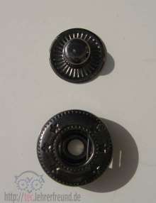 Warum im Technikunterricht nicht mal hinter das rettende Geheimnis des Druckknopfs kommen? Es ist die speziell geformte S-Feder. Erklärungen zur Funktionsweise anhand Foto und Zeichnung.