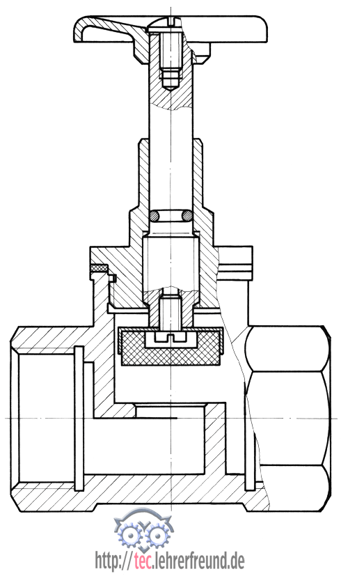 Hahn (Durchgangsventil) Zeichung eines Hahns (Durchgangsventil)