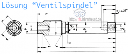 Bemaßen Sie die unten dargestellte Ventilspindel. Es müssen 22 Maße sein.