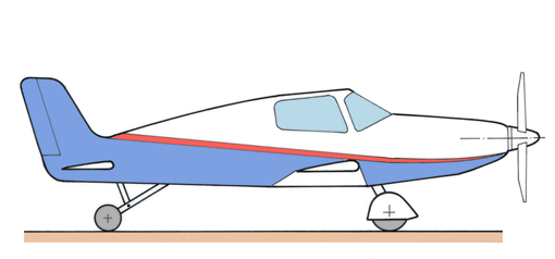 Wenn wir uns das Kleinflugzeug etwas genauer ansehen, erkennen wir: Sein Rumpf besteht aus mehreren keil- oder kegelförmigen Partien. Die roten Hülllinien unten zeigen es. Diese Formgebung hat mit der Notwendigkeit zu tun, dem Flugzeug eine möglichst windschlüpfrige, reibungsarme Außenhaut zu geben.