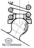 b) Die Druckfeder muss an beiden Enden sicher gehalten werden; sie darf nicht quer zur Längsachse hin- und herrutschen. Wie könnte das Problem gelöst sein? (Bedenken Sie, dass sowohl das Gehäuse als auch der Fuß Gussteile sind. Gussteile erlauben ein hohes Maß an Formanpassung; d. h. Sie können an beiden Teilen Formveränderungen vornehmen, um die Aufgabe zu lösen.)