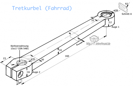 Fahrrad-Tretkurbel, Technische Zeichnung (Ausschnitt)