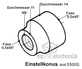 Der Einstellkonus ist vergütet, damit die Kugeln des Wälzlagers nicht einlaufen. Vergütungsstahl S500Q verwenden.