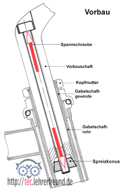2. Fahrradvorbau: Die Spannschraube mit 8 mm Schaftdurchmesser soll mit maximal 500 daN angezogen werden. Wie groß ist σ im Schaftquerschnitt?