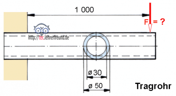 Wie groß ist die Last F in daN, wenn die Biegespannung 100 N/mm2 nicht überschreiten soll?