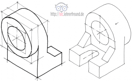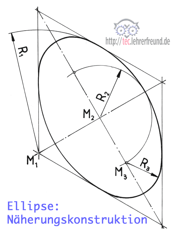 Stofflich gibt es dabei nicht Neues, außer der Näherungskonstruktion für 30°-Ellipsen, wie man sie in isometrischen Darstellungen benötigt. Die Näherungskonstruktion geht so: