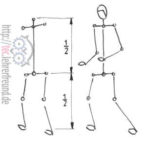 Ein Unterricht, in dem es in der Regel um unromantische Technik geht, darf auch einmal menschliche Züge tragen. Strichmännchen helfen dabei. Übrigens auch im Kunstunterricht.