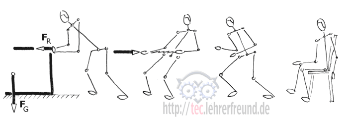 Im technischen Unterricht gibt es einige wiederkehrende Standardpositionen, die man üben kann und schnell beherrscht: Männchen, die drücken, ziehen, rennen, sitzen.
