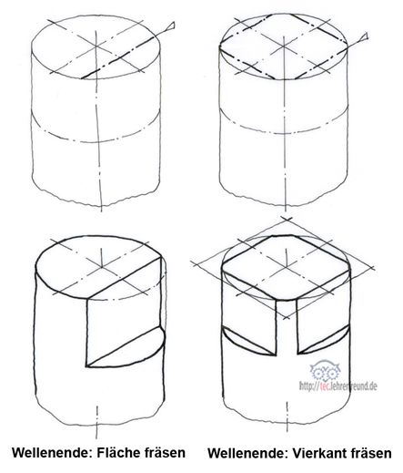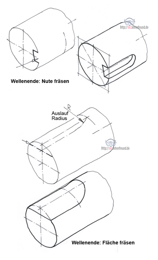 Freihand zeichnet man zylindrische Bauteile üblicherweise in Ansichten. Aber auch das perspektivisches Zeichnen bietet sich an, wenn es zum Beispiel um besonders geformte Wellenenden geht.
