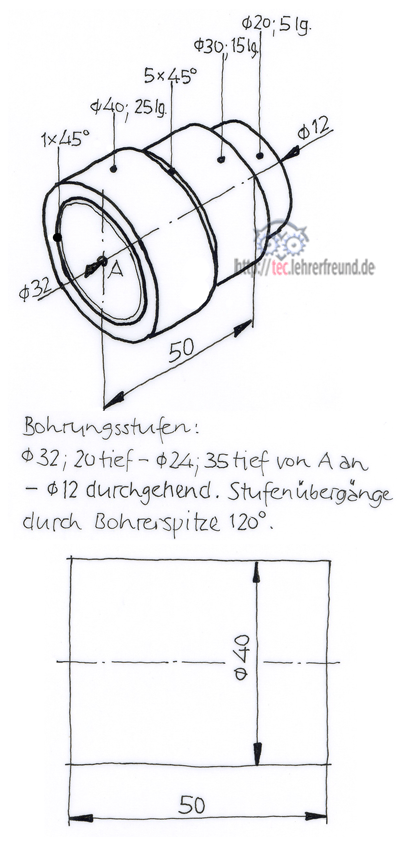 Die Buchse soll in Schritten freihand gezeichnet und als Halbschnitt dargestellt werden.