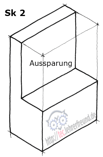 Quader, Skizze 2: mit Aussparung Quader, Skizze 3: mit Abschrägung