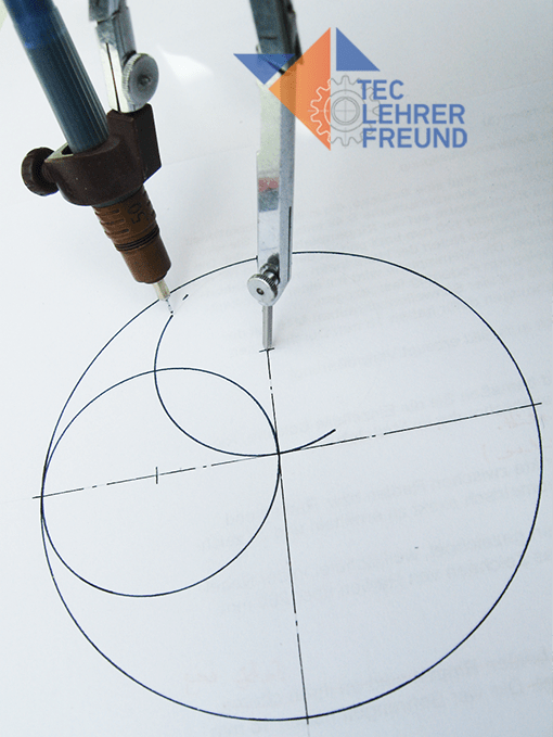 Der große Kreis hat den Radius r. Der Durchmesser der vier kleinen Kreise ist dann ebenfalls r.