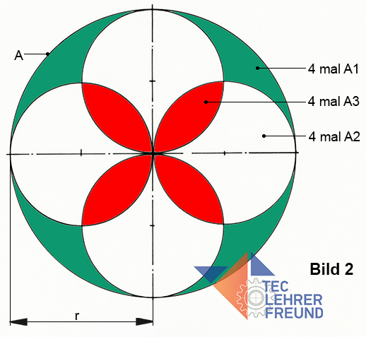 r2 · π : 4 = A1 + r2 · π : 4 – A3