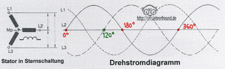 Drehstromgenerator (= Dreiphasenwechselstrom)